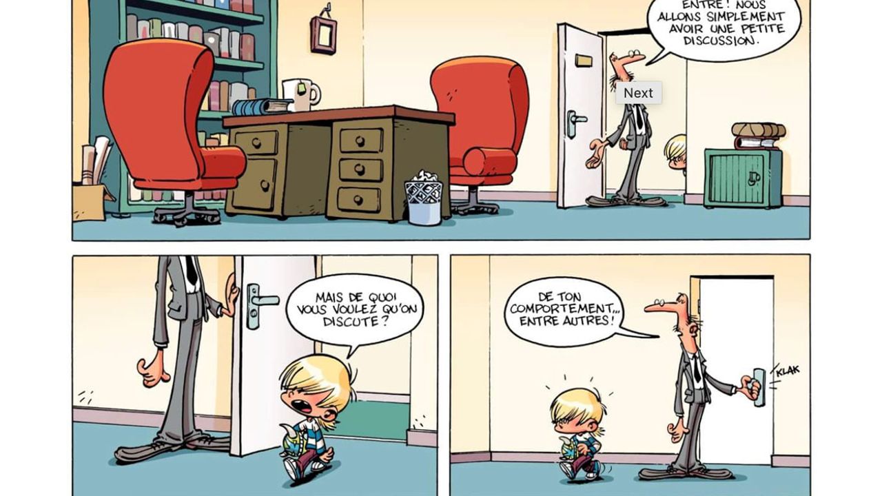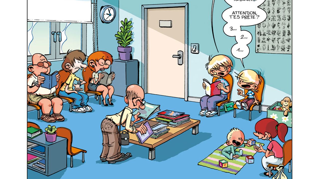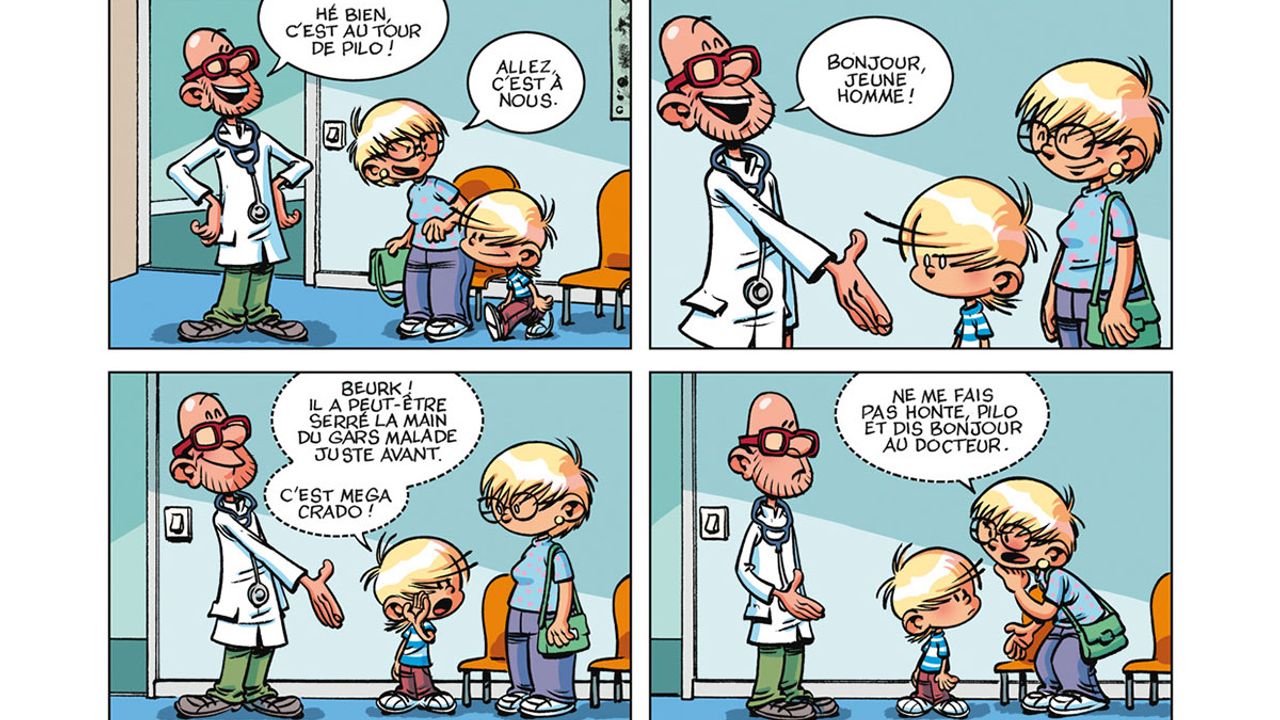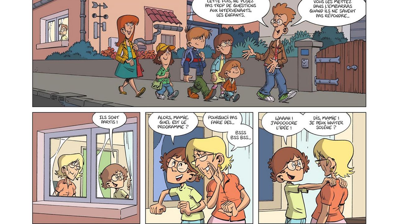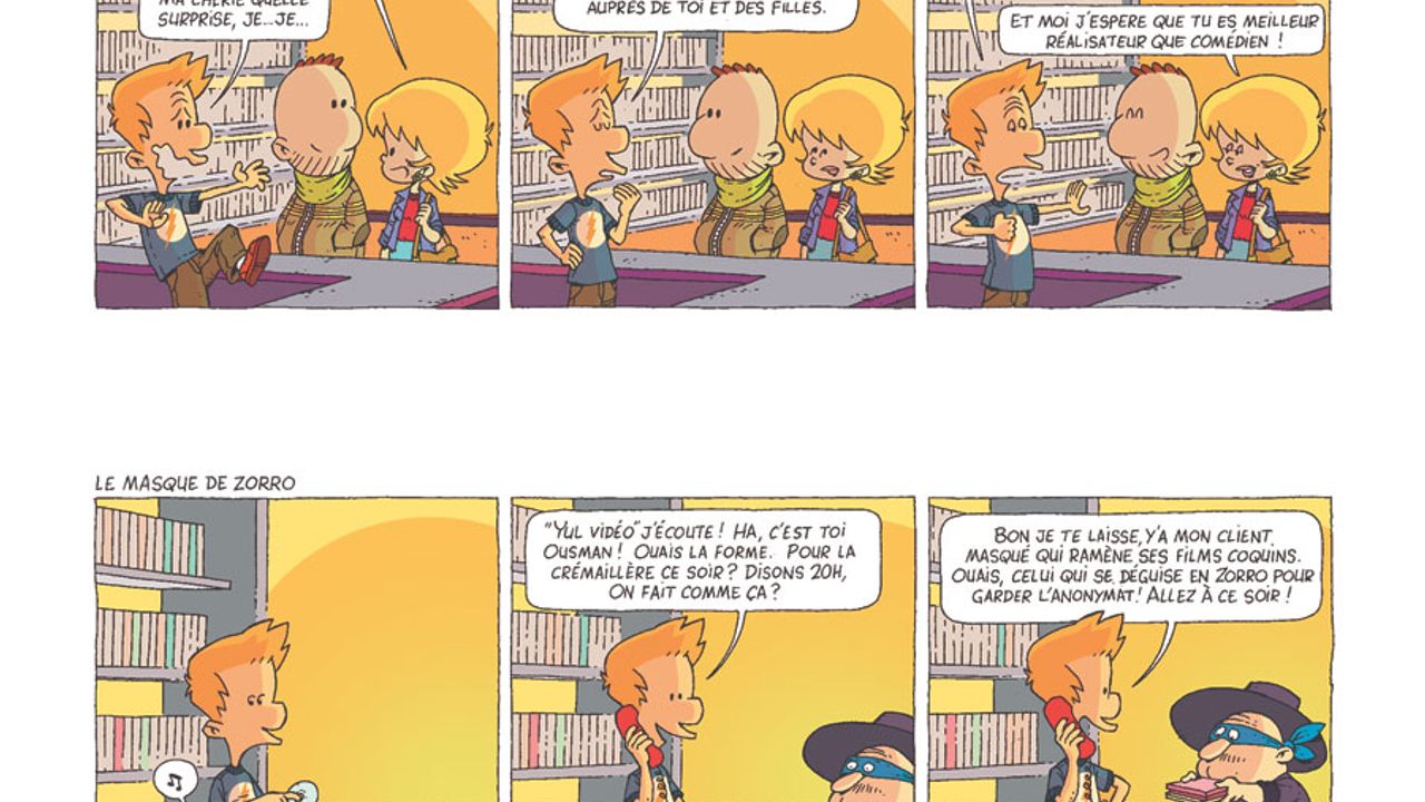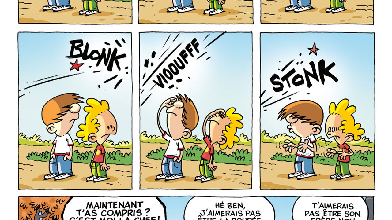 Test planche pour la série "Mes Cop's" publiée chez Bamboo (lien externe)