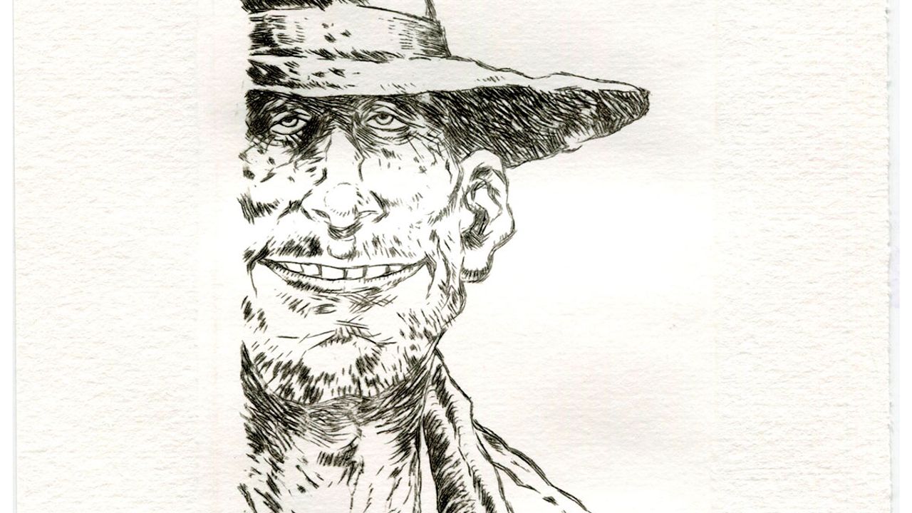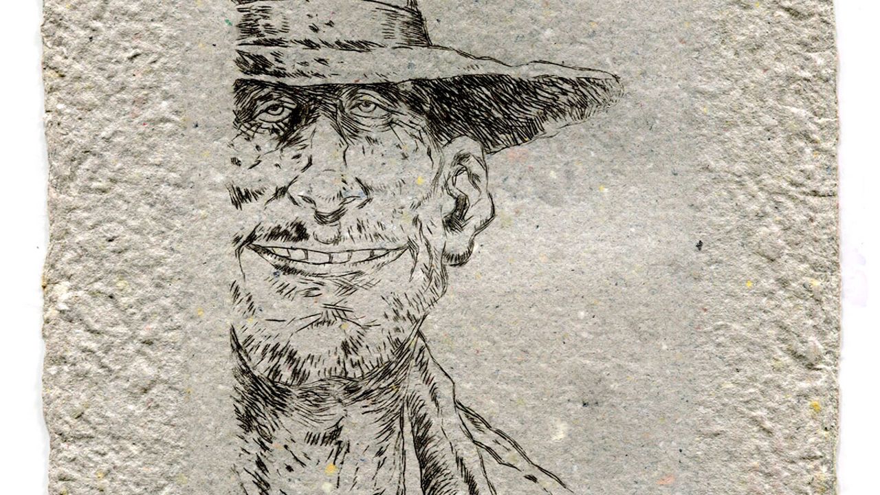 Estampe (gravure sur plexiglas) sur papier aquarelle, format portrait, 16 cm sur 25 cm.